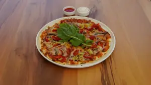 Özel pizza sosu-mozerella peyniri-mısır-domates-yeşil biber-kapri biber-mantar-zeytin